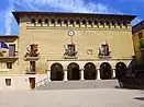 Es un palacio de arquitectura renacentista aragonesa datado en los siglos XVI y XVII ubicado en la Plaza Mayor. La fachada presenta un pórtico de cinco arcos de medio punto (lonja) y tres plantas. En la fachada lateral derecha hay dos arcos más. Aquellos y estos están colocados sobre gruesas columnas toscanas de fuste liso que se apoyan en basas con zócalos cuadrangulares con un toro.