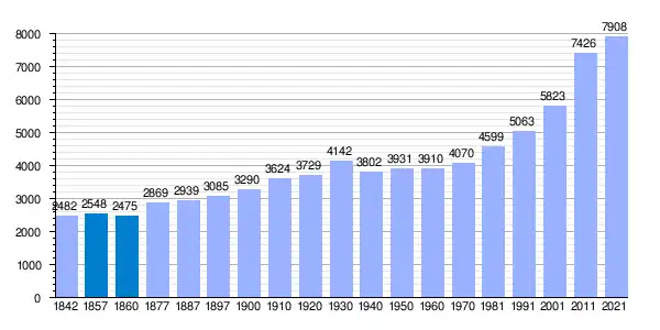 A mediados del siglo XIX, el lugar contaba con una población censada de 2482 habitantes.[4] La localidad aparece descrita en el undécimo volumen del Diccionario geográfico-estadístico-histórico de España y sus posesiones de Ultramar de Pascual Madoz de la siguiente manera: