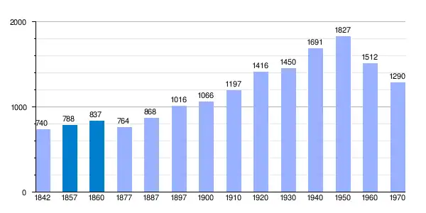 | Gráfica de evolución demográfica de Moreda[2] entre 1842 y 1970 |