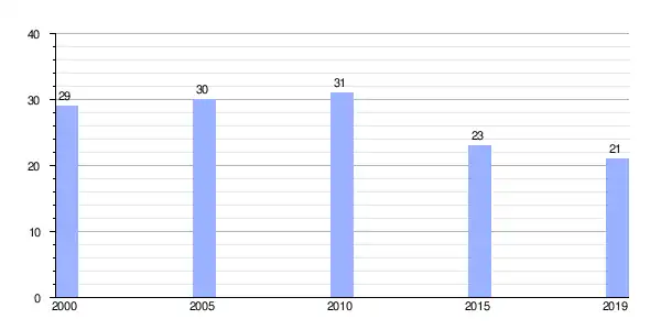 | Gráfica de evolución demográfica de Moreira (aldea) entre 2000 y 2019 |