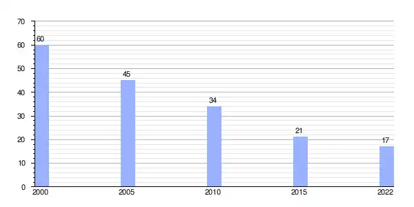 | Gráfica de evolución demográfica de Moreiras (parroquia) entre 2000 y 2022 |