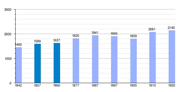 | Gráfica de evolución demográfica de Moreiras[9] entre 1842 y 1920 |