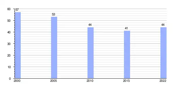 | Gráfica de evolución demográfica de Moreiras entre 2000 y 2022 |