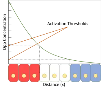 Durante el desarrollo temprano, los gradientes morfogenéticos generan diferentes tipos celulares en un orden espacial diferente. El morfógeno se une a los dominios extracelulares de proteínas receptoras, que mediante la transducción de señales comunican el nivel de morfógeno al núcleo. Estas cascadas de señalización suelen terminar en la activación de Factores de Trascripción.[4]