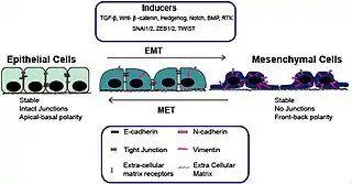 Uno de los fenómenos más importantes en el desarrollo es la transición epitelio-mesénquima. Este es el proceso mediante el cual las células de características epiteliales, altamente adheridas y en contacto con una lámina basal; se transforman en células mesénquimales, móviles y desagregadas.