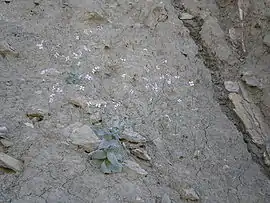 Crece sobre terrenos calizos y arcillosos, incluso salinos, de zonas esteparias, hasta una altitud de unos 400 m s. n. m.