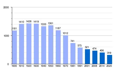 Población de hecho (1900-1991) según los censos de población del INE.      Población de derecho (2001 en adelante) según el padrón municipal del INE.