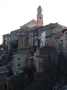 El pueblo presenta un casco urbano de origen medieval, con casas cimentadas sobre la ladera sureste de una montaña. Las edificaciones han sido ordenadas en terrazas, de forma que han generado calles, más o menos paralelas, en distintos niveles. Muchas edificaciones disponen de varias plantas que comienzan en la calle inferior y terminan en la superior. Así, es normal que la propia ladera ejerza de pared y que ello permita la existencia de innumerables cuevas. Numerosas calles empinadas y estrechas comunican con sus homólogas horizontales y sirven además para evacuar el agua de las lluvias.