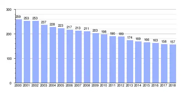 | Gráfica de evolución demográfica de Morquintián entre 2000 y 2018 |