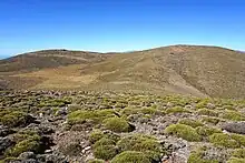 ![]() Vértice geodésico en la cima, con el Morrón de la Lagunilla o Mariné detrás a la izquierda y el Nuevo Mundo al fondo a la derecha. | ||