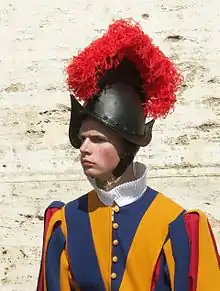 El morrión también fue usado en la mayor parte de los países europeos en los siglos XVI y XVII. Actualmente solo lo emplea la Guardia Suiza del Vaticano.