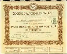 La Sociedad de Automóviles Mors, fue una firma industrial francesa especializada en el rubro de la ingeniería metalmecánica. Fue fundada en el año 1874 por el industrial Louis Mors junto a su hermano Émile, inicialmente como una empresa dedicada al rubro de la ingeniería eléctrica. Esta empresa se inició como un fabricante de componentes eléctricos, hasta que en 1880 decidió expandir su producción hacia otras ramas de la ingeniería eléctrica. A pesar de ello, en 1885 Émile Mors se aventura a producir su primer prototipo de automóvil impulsado con un motor de vapor, a partir de un calentador de petróleo. Este desarrollo animó a los hermanos Mors a avanzar en el plano industrial francés, constituyendo en 1895 la Sociedad de Automóviles Mors.