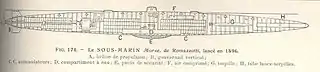El (bateau sous-marin) Morse fue diseñado para combinar las mejores características de ambos buques. El Conseil des travaux de la Marine Nationale examino en octubre de 1891 el diseño inicial fechado en abril del mismo año; se solicitaron diversos cambios y revisión de cálculos que fueron examinadas en mayo de 1892; como resultado, el Ministro de Marina Jacques Marie Cavaignac decidió en junio la construcción del sumergible en Cherburgo y notificándose dicha decisión el 9 de julio de 1892 y ordenando que su construcción fuera supervisada por el ingeniero naval Jean Ernest Simonot; sin embargo, largas deliberaciones sobre diferentes tipos de motores y propulsión dilataron su inicio en hasta el 19 de junio de 1897,[1] siendo botado dos años más tarde, en julio de 1899. Era de construcción de un solo casco en Bronce-Roma, una aleación de cobre de la invención de Romazotti, que estaba destinada a ser más flexible que un casco de acero, y que interferiría menos con la brújula magnética del buque. Estaba propulsado por un motor eléctrico de 284 hp , lo que le daba un alcance de 90 millas náuticas en superficie a una velocidad media de 4,3 nudos.[2]