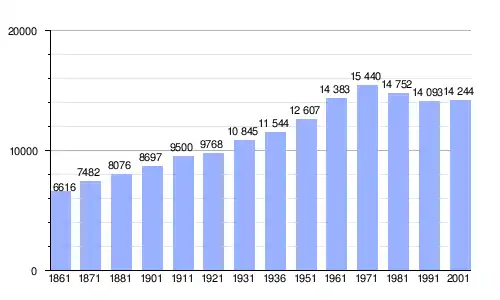 | Gráfica de evolución demográfica de Mortara entre 1861 y 2001 |