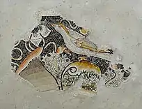 Detalle del mosaico que representa un delfín rodeando un ancla