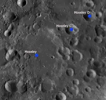 Por convención estos elementos se identifican en los mapas lunares colocando la letra en el lado del punto central del cráter más cercano a Moseley.