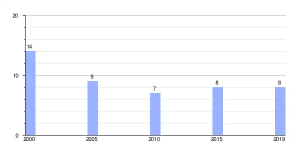 Gráfica de evolución demográfica de Mosteiro entre 2000 y 2019