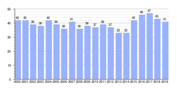 | Gráfica de evolución demográfica de Mosteiro (parroquia) entre 2000 y 2019 |