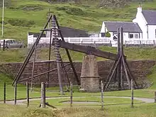 Los primeros motores de balancín estaban accionados por un salto de agua, y se usaban para bombear agua de las minas. Un ejemplo conservado se puede ver en la mina de plomo Straitsteps en Wanlockhead, en Escocia.