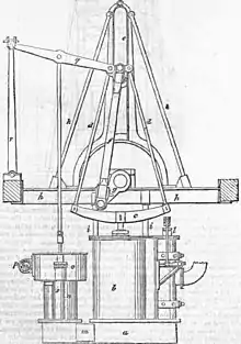 El motor de cruceta, también conocido como motor cuadrado, de aserradero o de bastidor en A, era un tipo de motor aplicado a las ruedas de paletas, utilizado frecuentemente en los primeros años de la navegación a vapor estadounidense.[12]