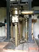 El diseño más grande posible de un motor de agua es el denominado motor de columna de agua o máquina de columna de agua[3] (en alemán: Wassersäulenmaschine ). Dichos dispositivos se usaban con fines de bombeo en diferentes áreas mineras desde mediados del siglo XVIII y uno de ellos fue utilizado, por ejemplo, por Georg Friedrich von Reichenbach en 1810 para bombear salmuera de Berchtesgaden a Reichenhall.[4]