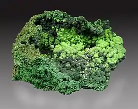 | Hábito cristalino | Cristales redondeados dipiramidales o prismáticos; en costras o drusas con intercrecimiento; en superficies botroidales | |