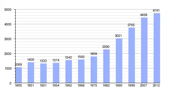 | Gráfica de evolución demográfica de Mouguerre entre 1800 y 2012 |