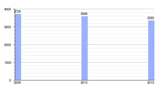 | Gráfica de evolución demográfica de Moussambé entre 2009 y 2015 |