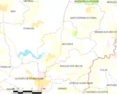 Moutiers es una población y comuna francesa, situada en la región de Bretaña, departamento de Ille y Vilaine, en el distrito de Rennes y cantón de La Guerche-de-Bretagne.
