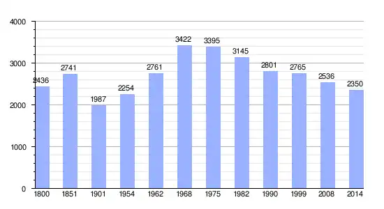 | Gráfica de evolución demográfica de Mouzon (Ardenas) entre 1800 y 2014 |