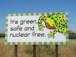 La plataforma adoptada por los delegados del Partido Verde (Estados Unidos) en su Congreso Anual Verde de 26 a 28 de mayo de 2000 reflejó que la mayoría de las opiniones incluían la creación de sistemas de energía renovable y el uso de recursos federales para incentivar el cierre de las plantas nucleares y dejar atrás los combustibles fósiles.[73]