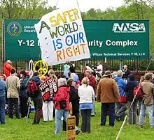 Hay una protesta anual en contra de las armas nucleares de los Estados Unidos en el Laboratorio Nacional Lawrence Livermore en California, en las protestas de 2007, 64 personas fueron arrestadas.[91] Ha habido una serie de protestas en el Sitios de Prueba de Nevada y en las protestas de abril de 2007 en el sitio de pruebas en el Desierto de Nevada, 39 personas fueron arrestados por la policía.[92] Ha habido protestas antinucleares en la Base Naval Kitsap por muchos años, y algunas más en 2008.[93][94][95] En 2008 y 2009 también hubo protestas en contra de varias propuestas de reactores nucleares.[88][89]