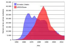 Entre 1945 y 1992, los Estados Unidos mantuvieron un poderoso programa de pruebas de armas nucleares. Se realizaron un total de 1054 pruebas nucleares y dos ataques nucleares, más de 900 de ellas en el Sitio de Pruebas de Nevada, y diez en diversos sitios en los Estados Unidos (Alaska, Colorado, Misisipi y Nuevo México).[28] Hasta noviembre de 1962, la mayoría de las pruebas de Estados Unidos se realizaban por encima del suelo; después de la aceptación del Tratado de Prohibición Parcial de ensayos nucleares, todas las pruebas fueron trasladas bajo tierra, con el fin de evitar la dispersión de la lluvia radiactiva.