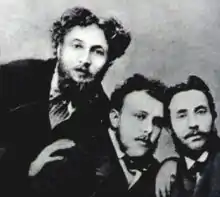 Aunque sutilmente, hay quien diferencia corriente literaria de movimiento literario.[4] El movimiento es un conjunto de autores y obras con características comunes, definidas en un manifiesto. La corriente, sin formar una escuela propiamente dicha, ofrece una estética e ideología fuerte. En otras ocasiones, el movimiento es más restringido, limitándose al equivalente a un grupo de artistas: un círculo literario que se somete al juicio de sus pares, como el círculo de Médan (cercle de Médan)[5] en torno a Émile Zola[6] o el círculo de Bloomsbury en torno a Virginia Woolf. Las reuniones literarias, salones literarios o tertulias literarias, incluso cuando tienen un carácter más formal (sociedad literaria,[7] sociedades de emulación), no se limitan estrictamente a los autores, sino que incluyen a lectores (si únicamente a ellos, se denominan clubes de lectura),[8] patrocinadores, dilettanti, meros curiosos, y extienden sus intereses a otros ámbitos.