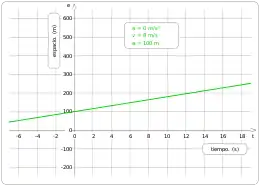 En física, un movimiento es rectilíneo uniforme cuando un «objeto» (por ejemplo) viaja en una trayectoria recta a una velocidad constante,[1] dado que su aceleración es nula.[2]