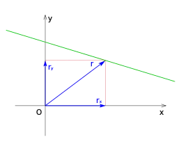 Si representamos la trayectoria rectilínea, en un sistema 2D, es una recta en el plano x-y, con un vector de posición: , de coordenadas: .