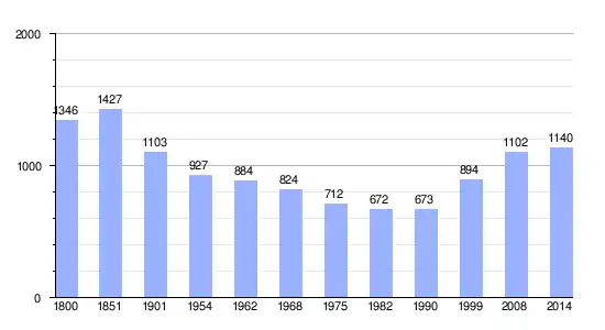 | Gráfica de evolución demográfica de Moyon entre 1800 y 2014 |