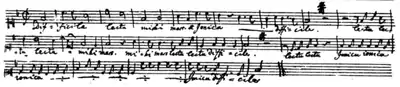 - Leck mir den Arsch fein recht schön sauber (‘Lámeme el culo hasta dejarlo limpio’), KV 233/382d.[nota 4] Publicado por primera vez con la letra censurada, bajo el título Nichts labt mich mehr als Wein (‘Nada me agrada más que el vino’). La música de este canon se atribuyó en un principio a Mozart, pero Wolfgang Plath demostró en 1988 que su verdadero autor fue Wenzel Trnka, originalmente sobre la letra italiana Tu sei gelosa, è vero[32] (‘Tú eres celosa, es verdad’). Como señalan los editores de la Neue Mozart Ausgabe, la composición casi podría considerarse una obra de Mozart, pero como autor de la letra y no de la música.[33]