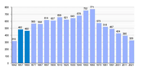 | Gráfica de evolución demográfica de Muñogalindo[2] entre 1842 y 2021 |