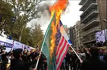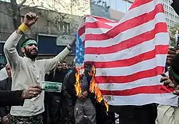 Tras la caída de la dinastía Pahlavi, la cual era pro estadounidense, a principios de 1979, los manifestantes iraníes, regularmente gritaban "Muerte a América", o "Muerte al Sha" en las afueras de la embajada estadounidense en Teherán, incluyendo el 4 de noviembre de 1979, día en el que la embajada del país norteamericano fue asaltada y comenzó la Crisis de los rehenes en Irán.[7] Durante la crisis, los iraníes rodeaban la embajada cantando "Muerte a América", o "Muerte a Carter".[8] Cuando Irán liberó a los últimos 52 rehenes americanos el 20 de enero de 1981, fueron conducidos a través de una turba de estudiantes que gritaban "Muerte a América", en su camino hacia el avión que les sacaría de Teherán.[9]
