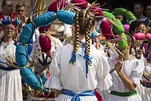 La parte festiva de la procesión la forman los misterios y los martirios (els misteris i els martiris), la muixeranga, las danzas de bastonets, la carxofa, los arquets, los pastorets, els llauradors o bolero, i los tornejants.[1]