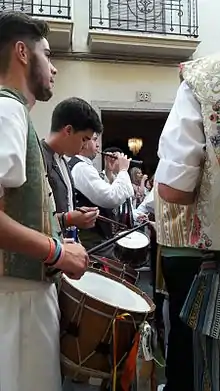 Los testimonios escritos más antiguos la vinculan a Algemesí datan del primer tercio del XVIII, pero por su presencia firme y constante se deduce un orien muy anterior. Según las referencias de las crónicas, la fecha de 1724, celebración de las primeras fiestas solemnes en honor de la Virgen de la Salud podría ser la más antigua que la vincula a la Fiesta; pero si se tiene en cuenta la constatación documental de la contabilidad municipal (los Llibres de Comptes de la Vila), desde 1733 y con periodicidad anual se liqudaba el sueldo de los dulzaineros que tocaban a la Fiesta.[4]