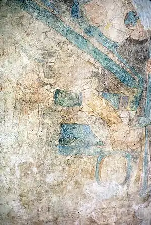 El arqueólogo mexicano Román Piña Chan considera el sitio como un desarrollo del periodo clásico tardío. En los frescos encontrados y trasladados a Mérida, hay una escena de una ceremonia de petición de lluvia con sacrificios humanos (prisioneros de guerra) en la que se da la presencia de sacerdotes mayas con atributos de las principales deidades mayas. También hay en los frescos escenas de guerra.[1]