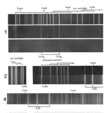 El científico español Miguel Catalán, entonces doctor especializado en el análisis químico espectrográfico, recibió en 1920 una beca de la Junta para Ampliación de Estudios e Investigaciones Científicas (JAE) para estudiar en el Imperial College de Londres junto a Alfred Fowler. Allí realizó el descubrimiento de los multipletes en 1921, lo que le convirtió en uno de los protagonistas de La Edad de Plata de la Ciencia Española,[2] y a la espectroscopia en un instrumento avanzado para la investigación de la estructura de la materia. Su labor investigadora contribuyó a una revisión del modelo de la estructura de la materia: el modelo atómico de Bohr-Sommerfeld-Catalán.