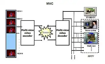 Multiview Video Coding (MVC), ( ISO / IEC 14496-10:2008 corrección 1), es una extensión de los estándares de compresión de vídeo H.264/MPEG-4 AVC o popularmente conocido como Advanced Video Coding, desarrollado gracias a los esfuerzos conjuntos de MPEG/VCEG, que permite una eficiente codificación de secuencies capturadas simultáneamente desde varias cámaras de vídeo con un único flujo de datos. El MVC, está orientado a la codificación de vídeo estereoscópico, y también para la FTV (Televisión de punto de vista libre) y la televisión 3D. Este sistema de codificación MVC, ha estado pensado para que también sea compatible con H.264/AVC, de forma que permita a los dispositivos antiguos descodificar el vídeo estereoscópico, ignorando la información adicional del segundo punto de vista y mostrando la imagen en 2D.