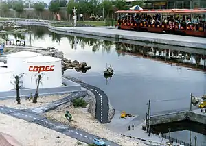 ![]() El parque "Chile en Miniatura" junto al pequeño tren que llevaba a los visitantes a través del lugar. | ||