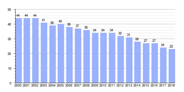 | Gráfica de evolución demográfica de Mundrís entre 2000 y 2018 |