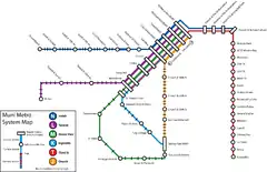El Muni Metro es un sistema híbrido de tren ligero/tranvía que abastece a la ciudad de San Francisco, California, operado por el San Francisco Municipal Railway (Muni), es una división del San Francisco Municipal Transportation Agency (SFMTA). Con un promedio de 128,500 de pasajeros en el cuarto periodo de 2014, el Muni Metro es uno del tercer sistema de tren ligero más ocupado de los Estados Unidos.[2] El Muni Metro opera una flota de 151 vehículos de tren ligeros hechos por Breda.