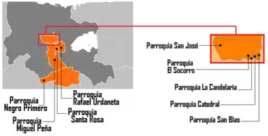 | Parroquias | Candelaria, Catedral, El Socorro, Miguel Peña, Rafael Urdaneta, San Blas, San José, Santa Rosa y Negro Primero | |||