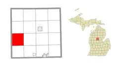 ![]() A la izquierda, ubicación entre las subdivisiones administrativas del condado de Clare. A la derecha, ubicación del condado de Clare en el estado de Míchigan